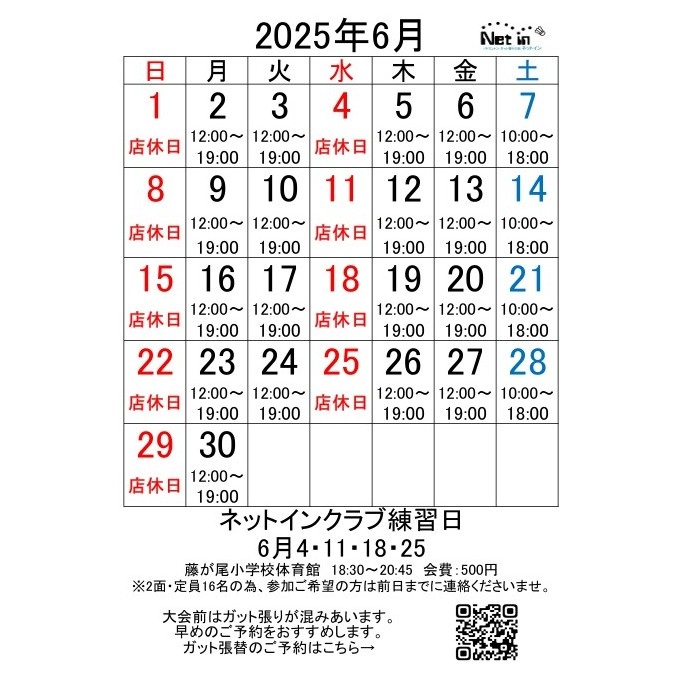 2025年6月の営業予定をお知らせします。
